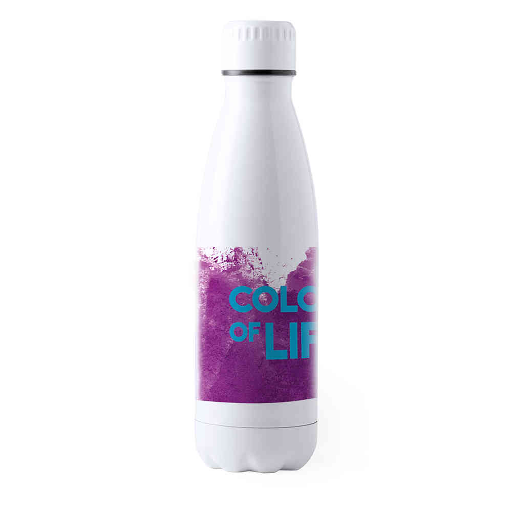 Bidón para sublimación de 700ml de capacidad con cuerpo acabado en acero inox en color blanco mate. Con tapón de seguridad. Presentado en atractiva caja de diseño.